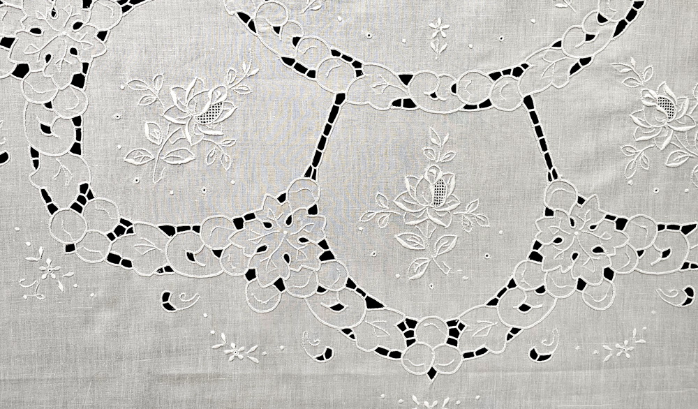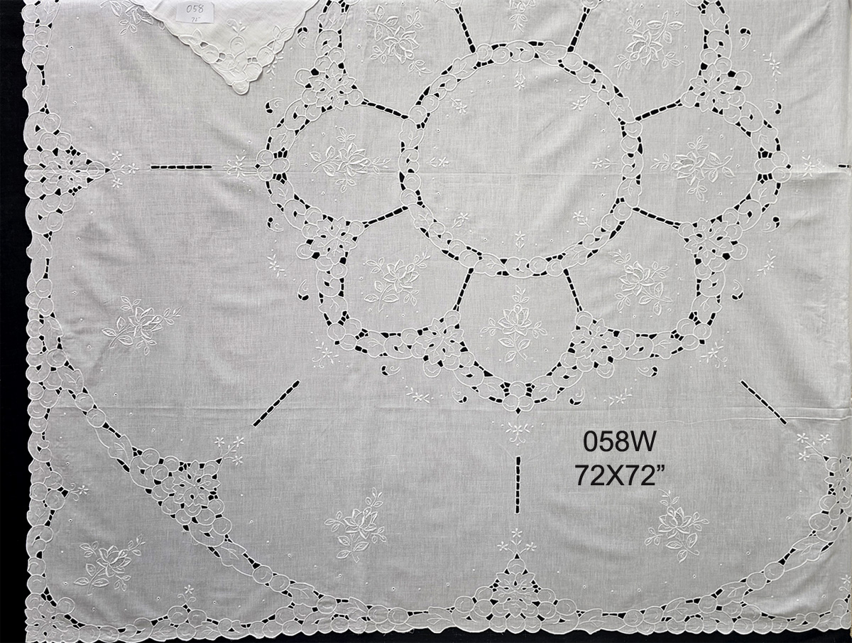 058W 72X72" White linen with cutwrok embroidery tablecloth