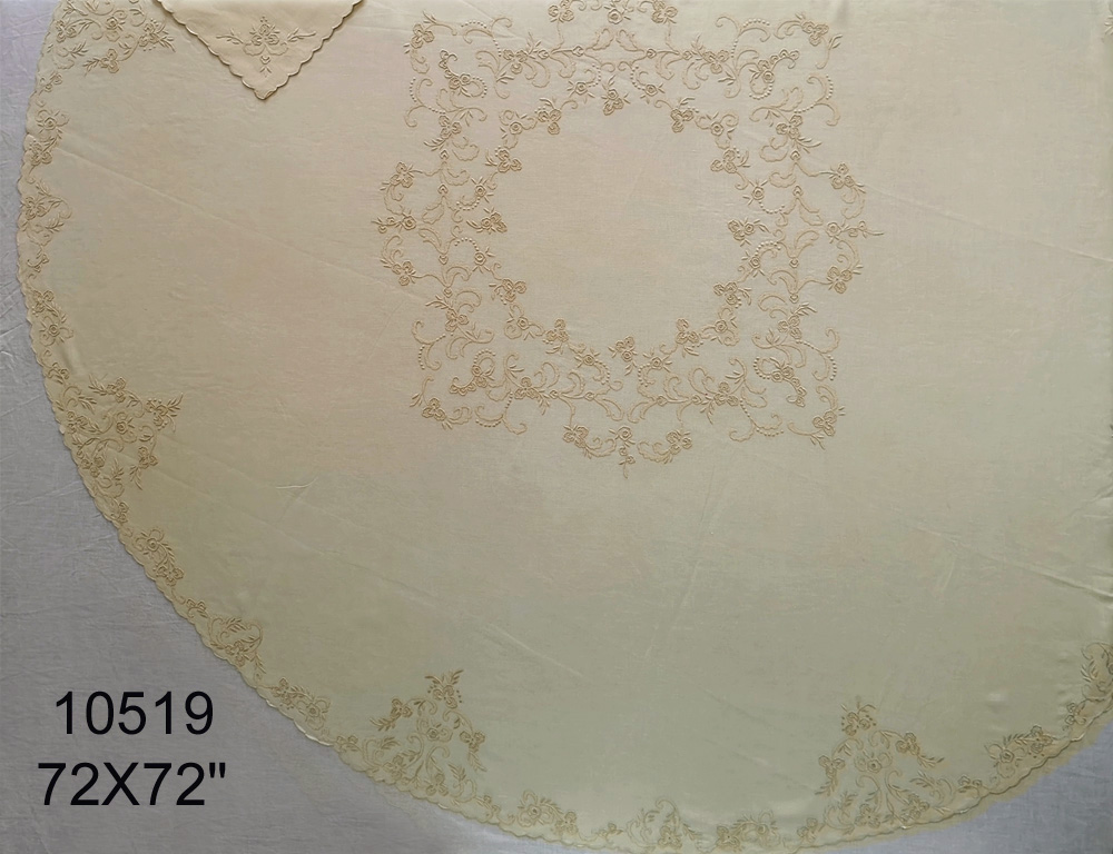 10519 72X72" Cream linen with fine embroidery tablecloth