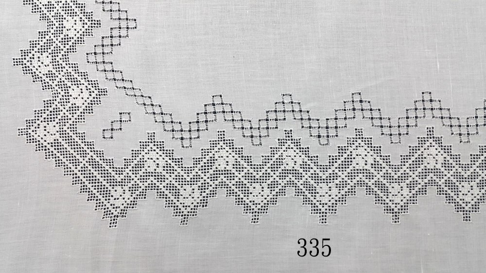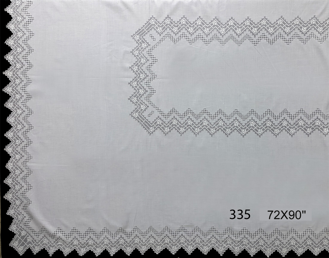 335 72X90" White linen with drawn work hand embroidery tablecloth