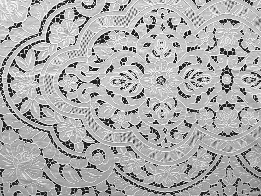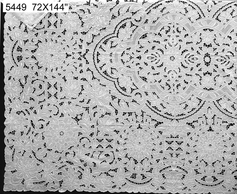 5449 72X144" White linen with cutwork heavy hand embroidery tablecloth