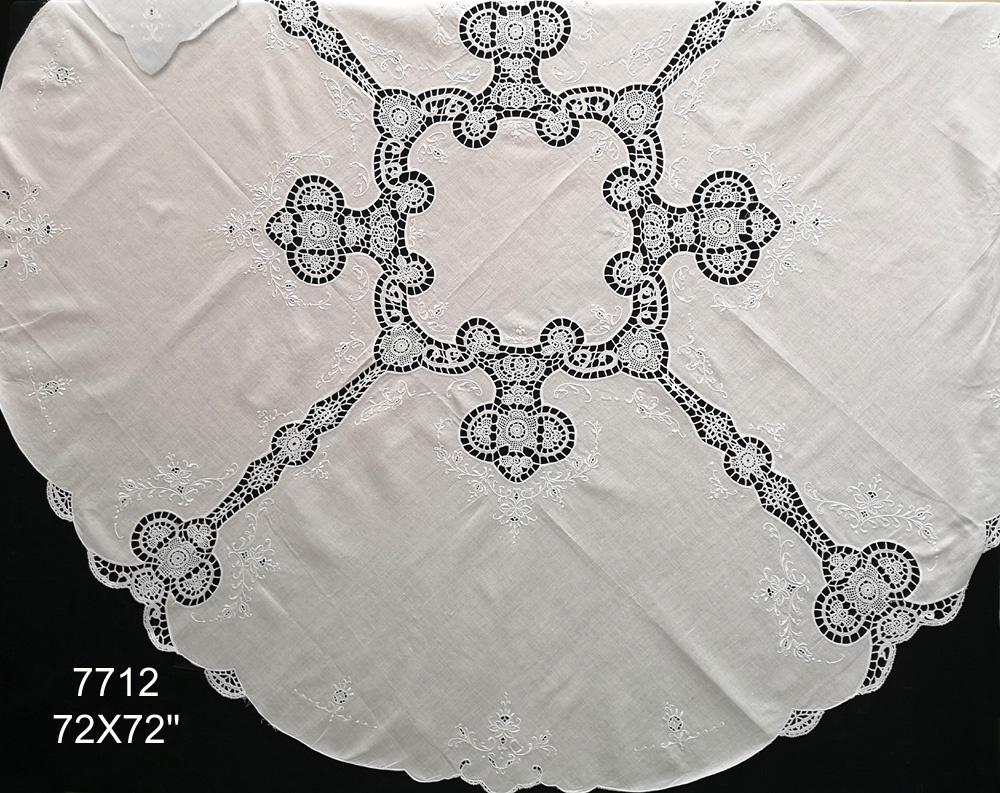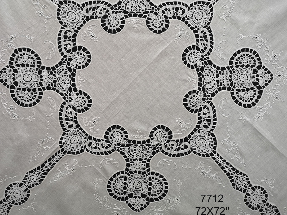 7712 72X72" White linen with crochet lace embroidery tablecloth