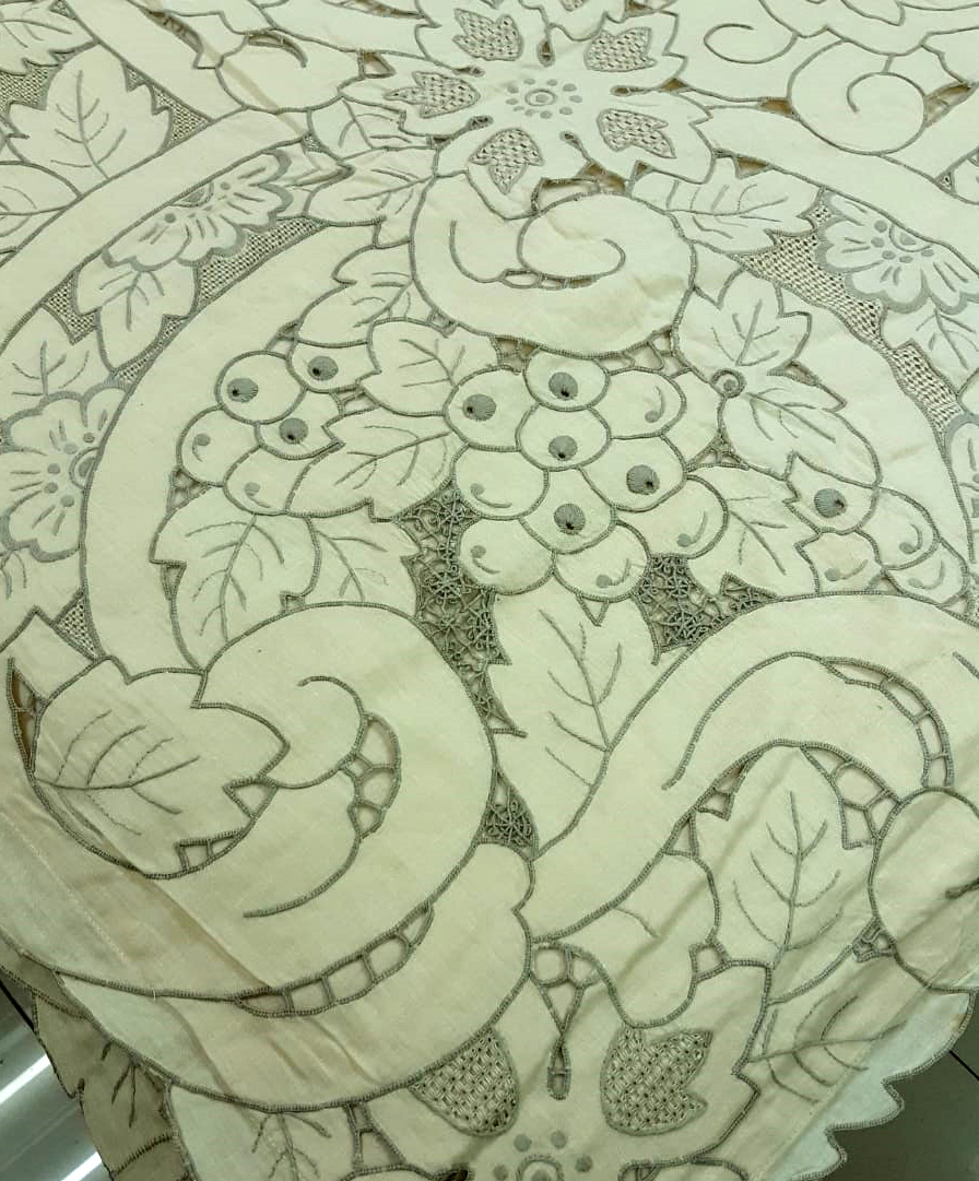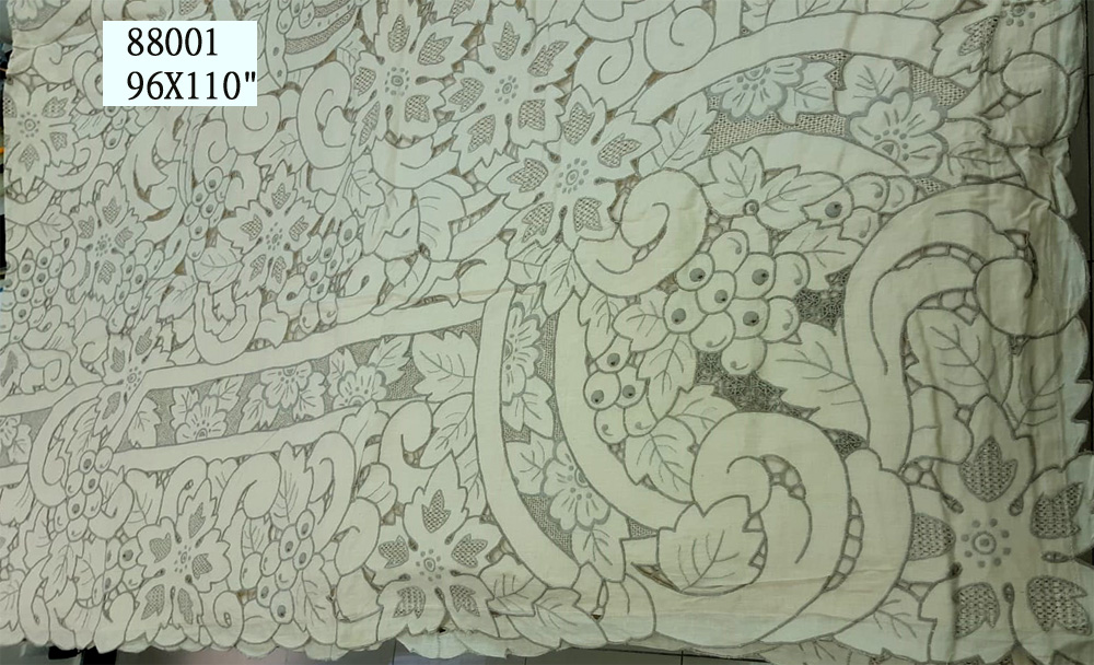 88001 96X110" Ecru linen with heavy hand embroidery bed cover