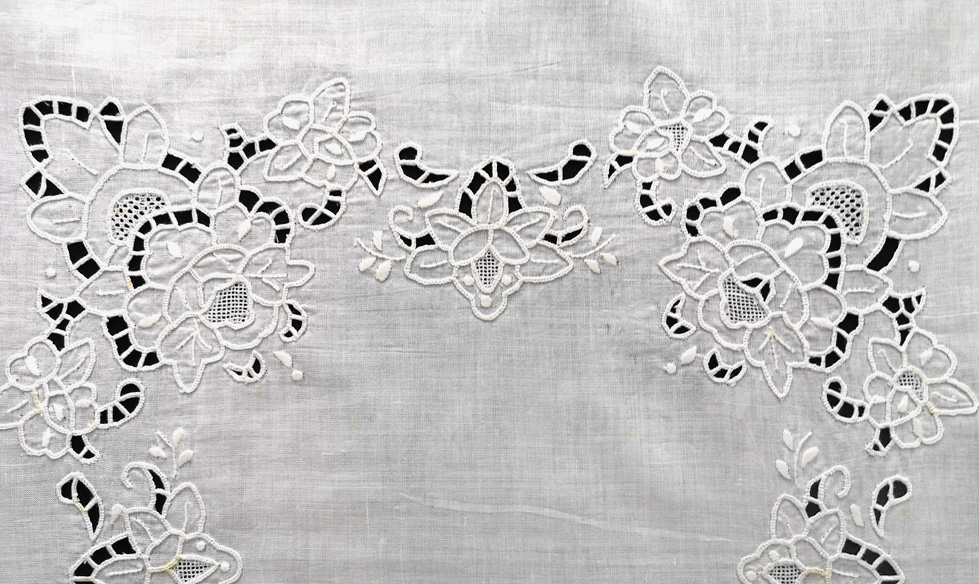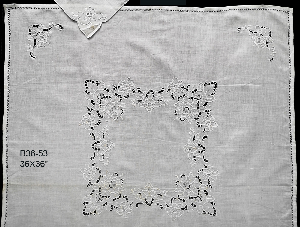 B36-53 36X36" White linen with cutwork hand embroidery tablecloth