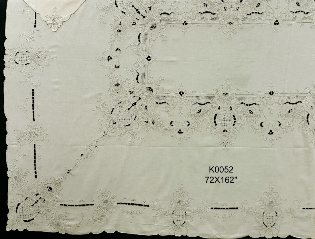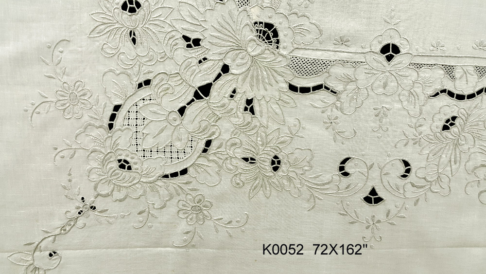 K0052 72X162" Ecru linen with heavy embroidery tablecloth