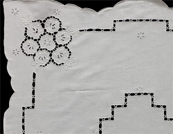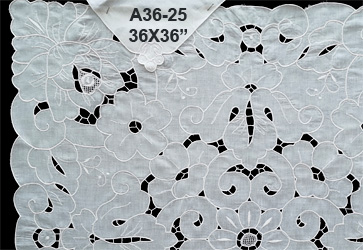 |  A36-25  36X36" White linen with cutwork hand embroidery