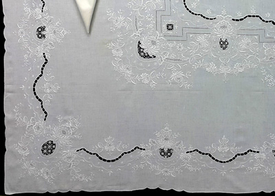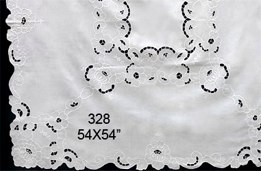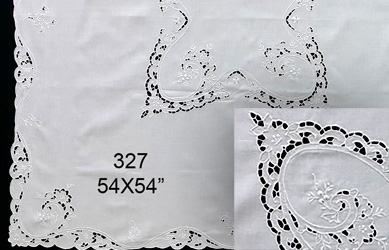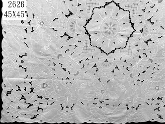 |  2626 45X45" White linen with cutwork embroidery tablecloth.
