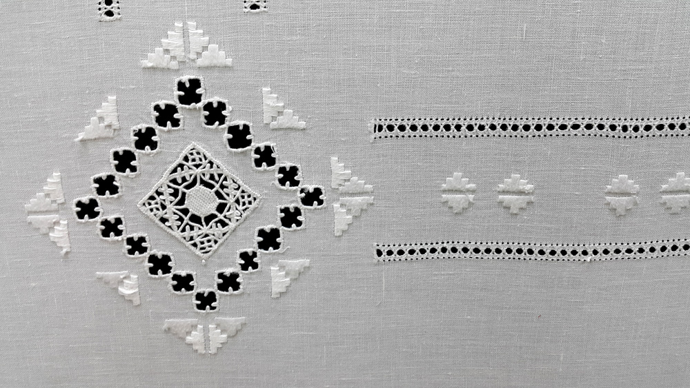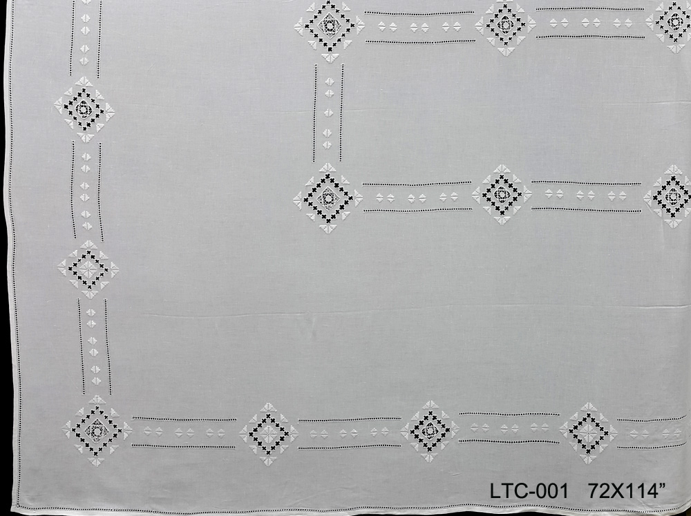 LTC-001 72X114" White linen with hemstitch embroidery tablecloth