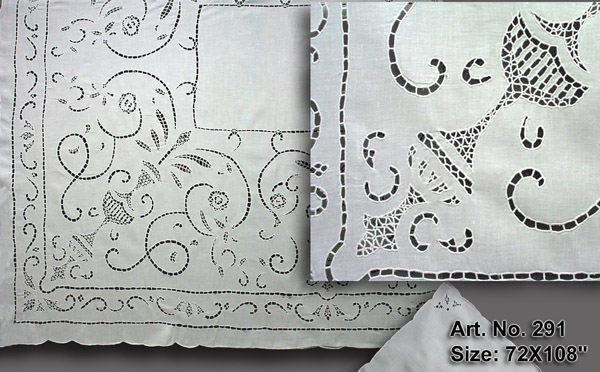 White linen with heavy cutwork hand embroidery tablecloths