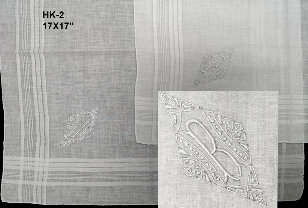 HK-2 17X17" One set of gent's hand embroidery handkerchiefs . Initial J 22 pcs. R 12 pcs. P 2 pcs.