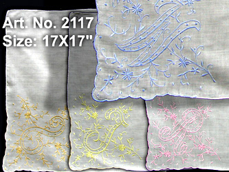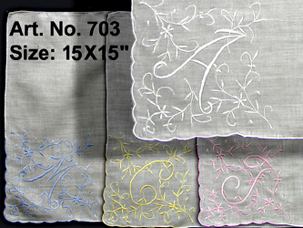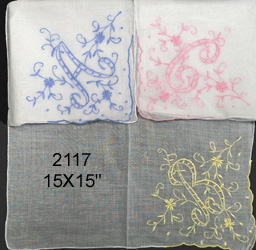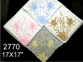 cotton with color machine embroidery hand rolled edges Initials handkerchiefs
